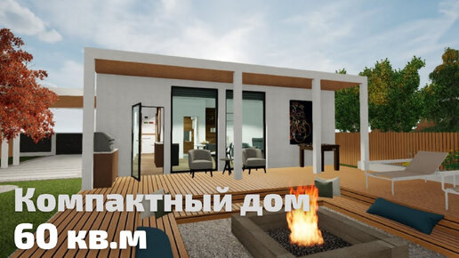 Каркасный дом 8 на 8 с террасой/ готовый проект, экстерьер, интерьер, планировка.