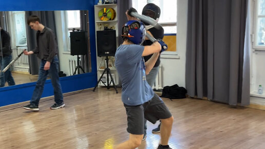 Обучение владению катаной. Кендзюцу. Спарринг на длинных мечах в зале на занятии Katana Club