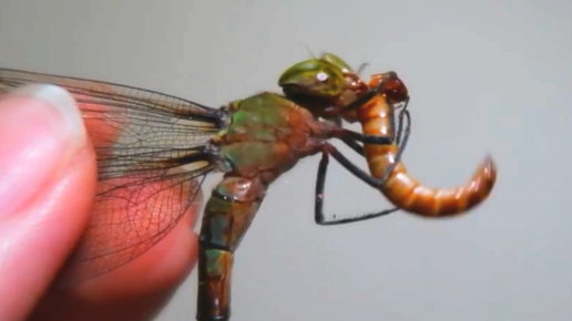 Большая стрекоза кушает мучного червя Милые животные видео про насекомых Стрекоза крупным планом