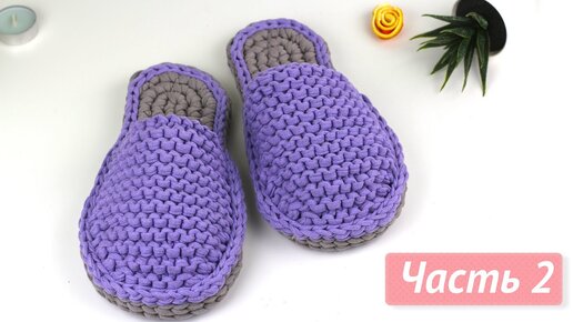 Как связать тапочки из трикотажной пряжи. Часть 2/2 (Верхняя часть "Закрытая" спицами)