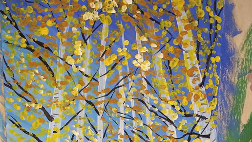 Рисуем ватными палочками весенние берёзы. Справится даже ребёнок.