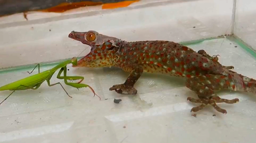 Геккон эублефар домашний ест богомола Необычные домашние питомцы Милые животные видео про насекомых