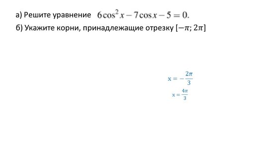 ЕГЭ по математике. Профильный уровень. Решение тригонометрического уравнения. Нахождение корней, принадлежащих промежутку.