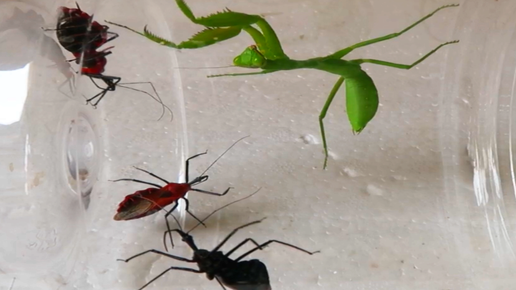 Охота богомола на кровососущих насекомых клопов Необычные домашние питомцы Милые животные видео про насекомых