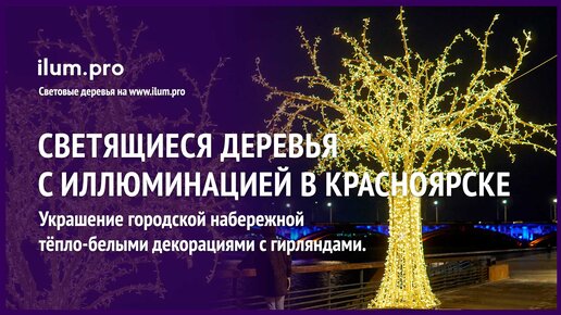 Украшение набережной в Красноярске светящимися деревьями с гирляндами / Айлюм Про