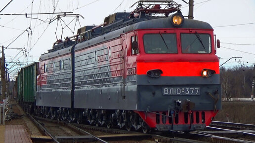 "Тёмно-серый с малиновым цветом!" Электровоз ВЛ10У-377 с грузовым поездом