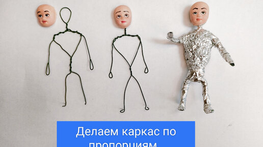 Проволочный каркас для ватной игрушки по пропорциям. А так же первый слой обмотки.