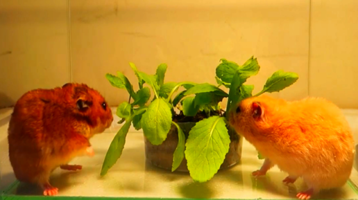 Хомячки кушают салат Милые Животные Видео про Насекомых Необычные домашние питомцы Хомяк ест листья салата
