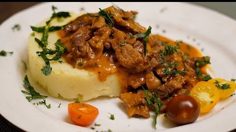 Бефстроганов из говядины с паприкой. Неизменно вкусное, питательное второе блюдо.