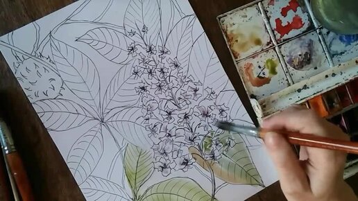 Карандаш.Ручка.Акварель..Каштан.. графика. живопись. рисование. творчество.