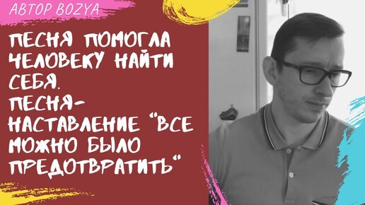 ПЕСНЯ ПОМОГЛА ЧЕЛОВЕКУ НАЙТИ СЕБЯ. ПЕСНЯ-НАСТАВЛЕНИЕ "ВСЕ МОЖНО БЫЛО ПРЕДОТВРАТИТЬ". АВТОР BOZYA