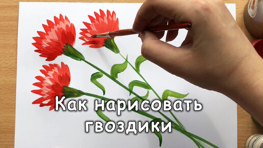 Рисуем гвоздики гуашью. Простой рисунок ко Дню Победы 9 мая.