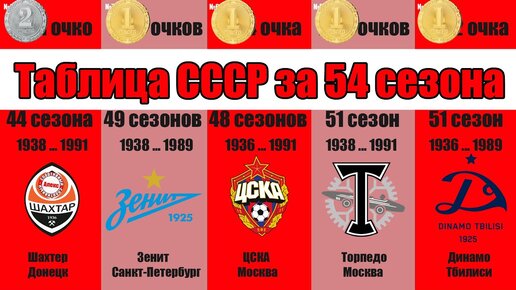 Как выглядит полная таблица чемпионата СССР за все времена?