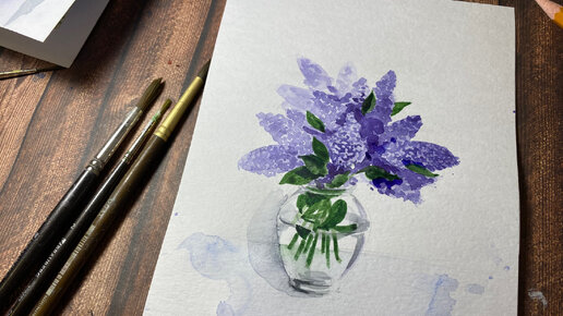Как нарисовать сирень в стеклянной вазе. Акварель для начинающих