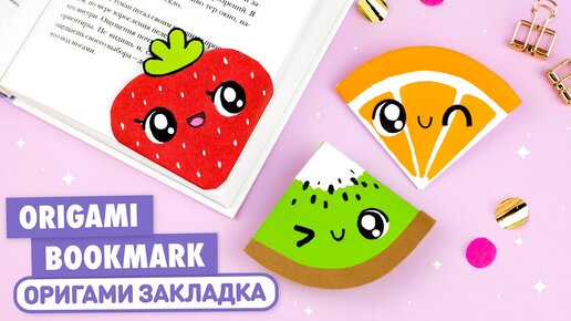 Оригами Книжная Закладка Клубника, Апельсин и Киви из бумаги
