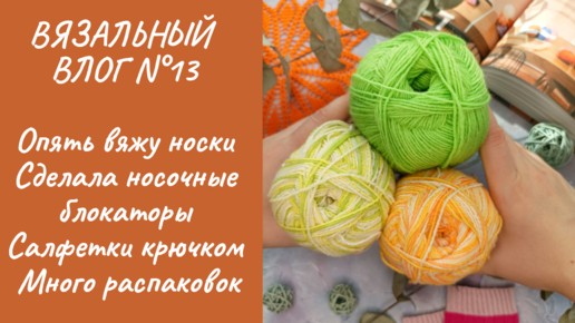 ВЯЗАЛЬНЫЙ ВЛОГ N°13 | Носки | Блфокаторы для носков из картона | Салфетки крючком | +1кг новой пряжи