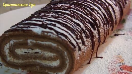 Шоколадный бисквитный рулет с легким сметанным кремом | Оригинальная Еда