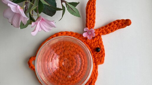 Подставка под кружку «Зайка» Связана из трикотажной пряжи Нитка Заказать пряжу можно тут https://nitkashop.com/?r=3