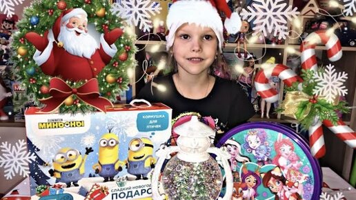 Сладкий Новогодний подарок от Миньонов и Энчантималс❄️Плюс раскраска, наклейки и пазл❄️