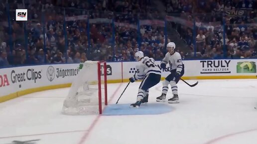 Илья Михеев №65 забрасывает две шайбы в пустые ворота "Тампа-Бэй" в третьем матче серии.