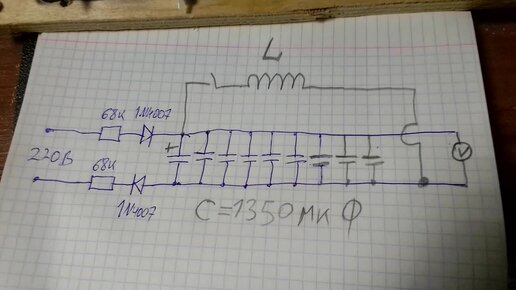 Разряд магазина ёмкостью 1350 мкФ на индуктивность. Схема