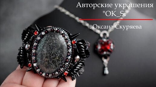 Широкий вышитый браслет с камнем. Браслет с гематитом. Wide embroidered bracelet with a stone. Handmade bracelet
