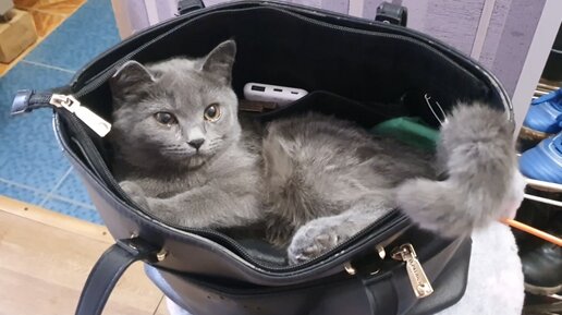 Котёнок🐱 залез в сумку хозяйки и не хочет уходить