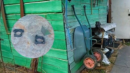 Самоделка из уголка и крепежа для садовой тачки. Место на стене для тачки.