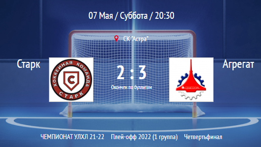 Старк (г.Уфа) - Агрегат (г.Сим) 07.05.2022 1/4 финала 1ой группы матч №3