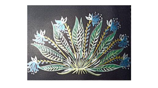 Растение с голубыми цветами - рисунок маркерами металлик.