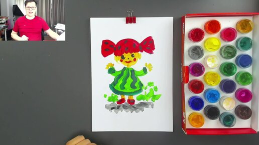 Девочка АРБУЗ - рисуем красками - рисунки для детей