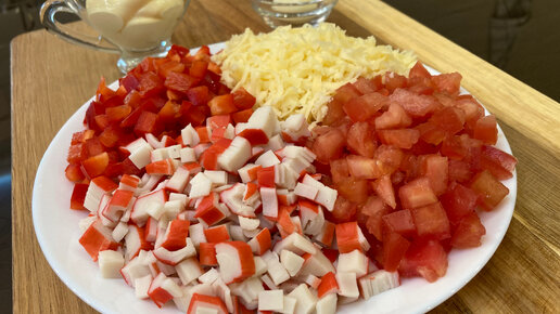 Незаслуженно забытый салат «Красное море» с крабовыми палочками. Не нужно ничего варить.