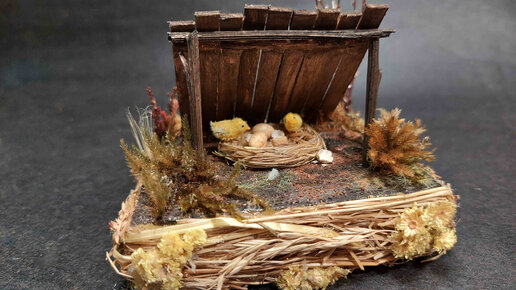 Делаем миниатюру с цыплятами из полимерки и флока