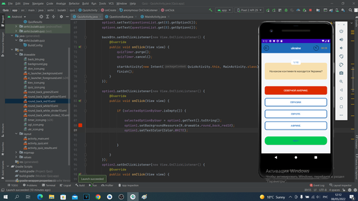 Приложение Викторина на Java в Android Studio. Урок 19. Добавляем функционал при выборе ответа.