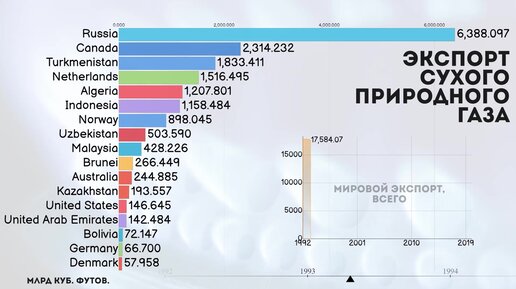 ТОП стран по экспорту сухого природного газа.Добыча газа.Обработка газа.Статистика.Инфографика