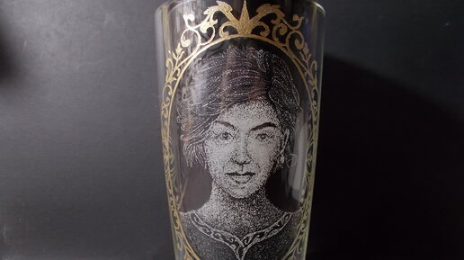 Ручная гравировка портрета с ажурной рамкой,на стакане.