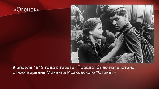 "Огонёк". Автор музыки не известен, слова Михаила Исаковского.