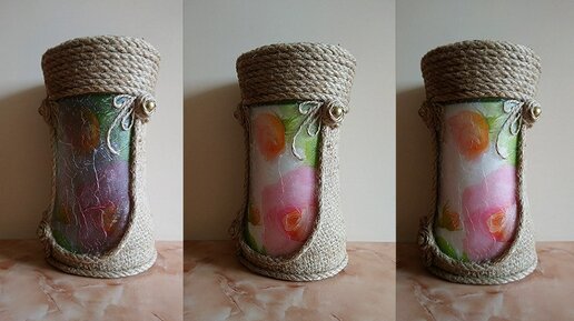 Джутовый декор банки кофе+декупаж без белой подложки. Посмотрите, что может получиться.