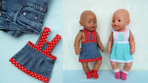 Переделка одежды. Как сшить сарафан для куклы из джинсовых лоскутов