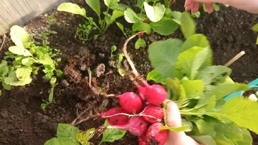 Вот и первый урожай редиса вырос, контейнерный способ не подвел.
