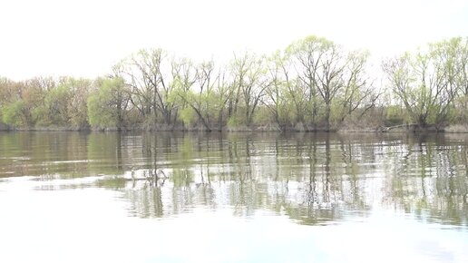 Москва-река в центре Коломны и отражения лиственных деревьев