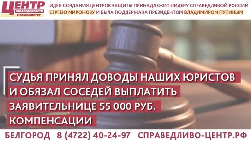 БЕЛГОРОД ЖЕНЩИНА ОТСУДИЛА У ЗАТОПИВШИХ ЕЕ СОСЕДЕЙ 55 000 РУБЛЕЙ