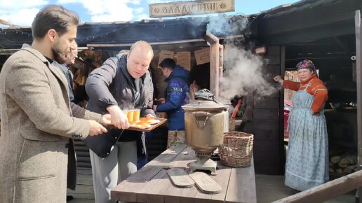 Баянист Павел Сивков в городе Свияжск. Русская печка, блинчики, чай, самовар.