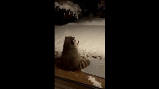 Ничего особенного, просто енотик ловит снежинки...