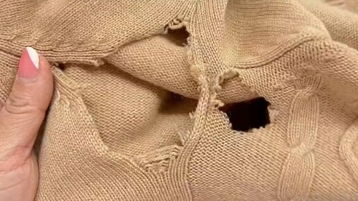 Ремонт большой дырки под мышкой в кардигане