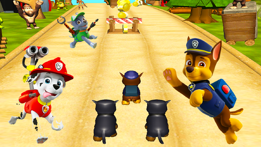 Прыгай за щенка из Щенячий патруль в бухте приключений и мультик могучие щенки