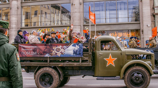 Парад 2022 в Санкт-Петербурге. Ветераны на ретроавтомобилях