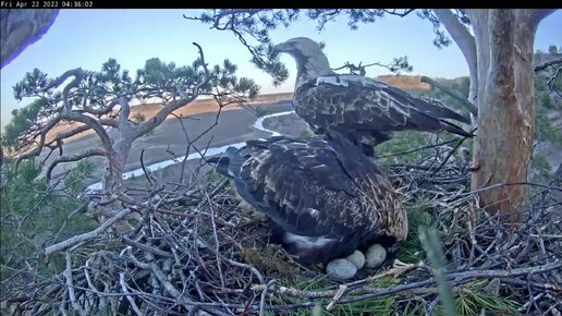 22.04.2022. Алтын в первый раз видит третье яйцо. Солнечные орлы Aquila heliaca, Татарстан.