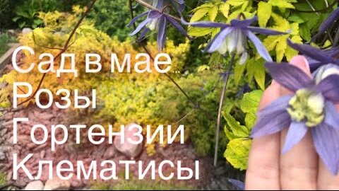Май в саду. Розы, метельчатые гортензии, айва, клематисы и опоры.. Прогулка и обзор