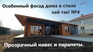 Особенный фасад дома в стиле хай тэк! №4. Прозрачный навес и парапеты.